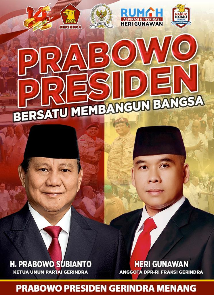 Tidak ketiggalan, di baliho tersebut juga terpampang foto Prabowo Subianto selaku Ketua Umum Partai Gerindra dan Heri Gunawan selaku Anggota DPR-RI dari Dapil Kota dan Kabupaten Sukabumi.
